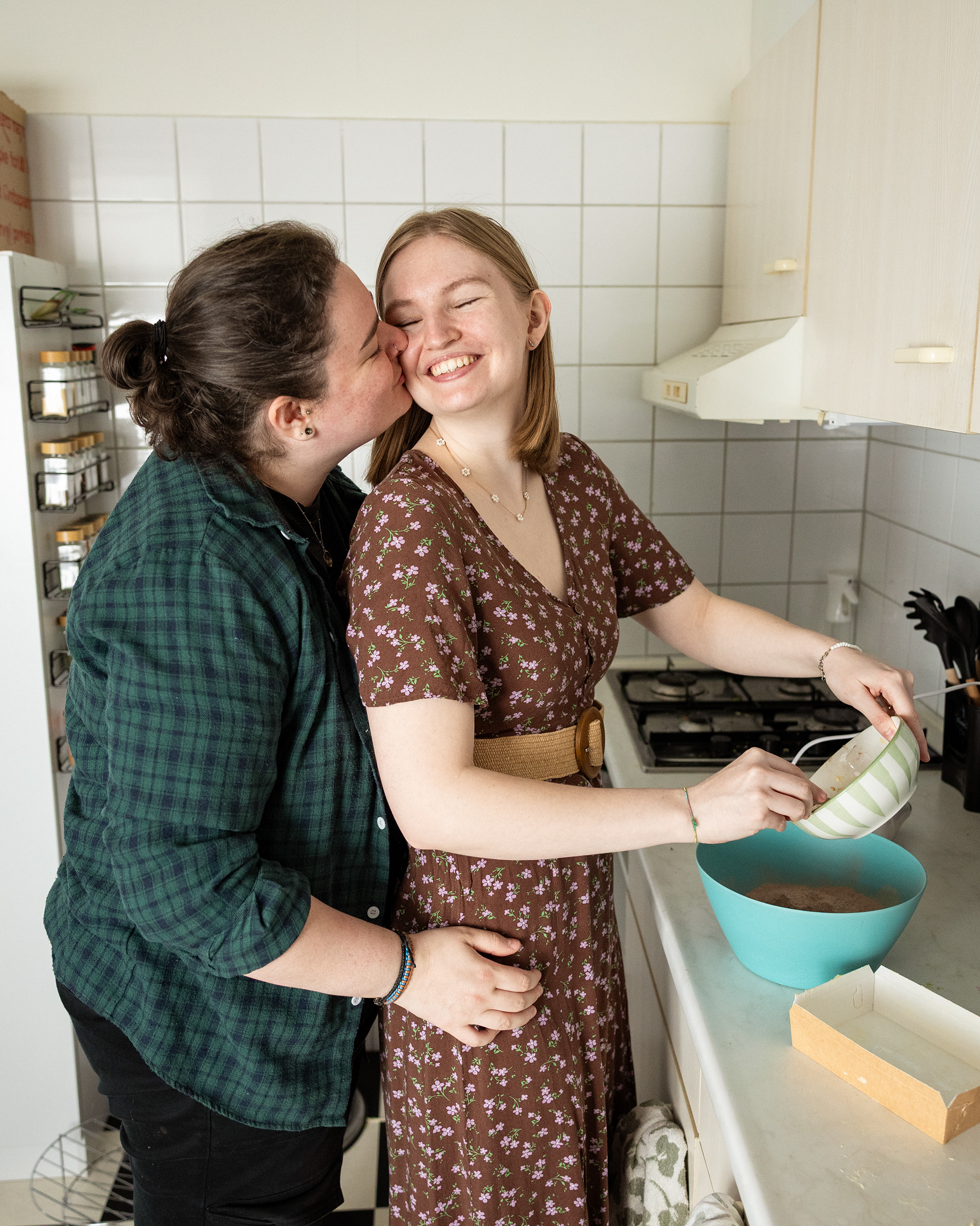 Op de dag van de shoot neem ik jullie helemaal mee in het proces. Jullie hoeven geen ervaring te hebben voor de camera – ik zorg ervoor dat jullie je op je gemak voelen. We bewegen veel, zodat alles natuurlijk aanvoelt en er spontane, speelse en oprechte beelden ontstaan. Tussendoor geef ik subtiele aanwijzingen en opdrachten die jullie interactie versterken, zodat het echt als jullie eigen moment voelt.